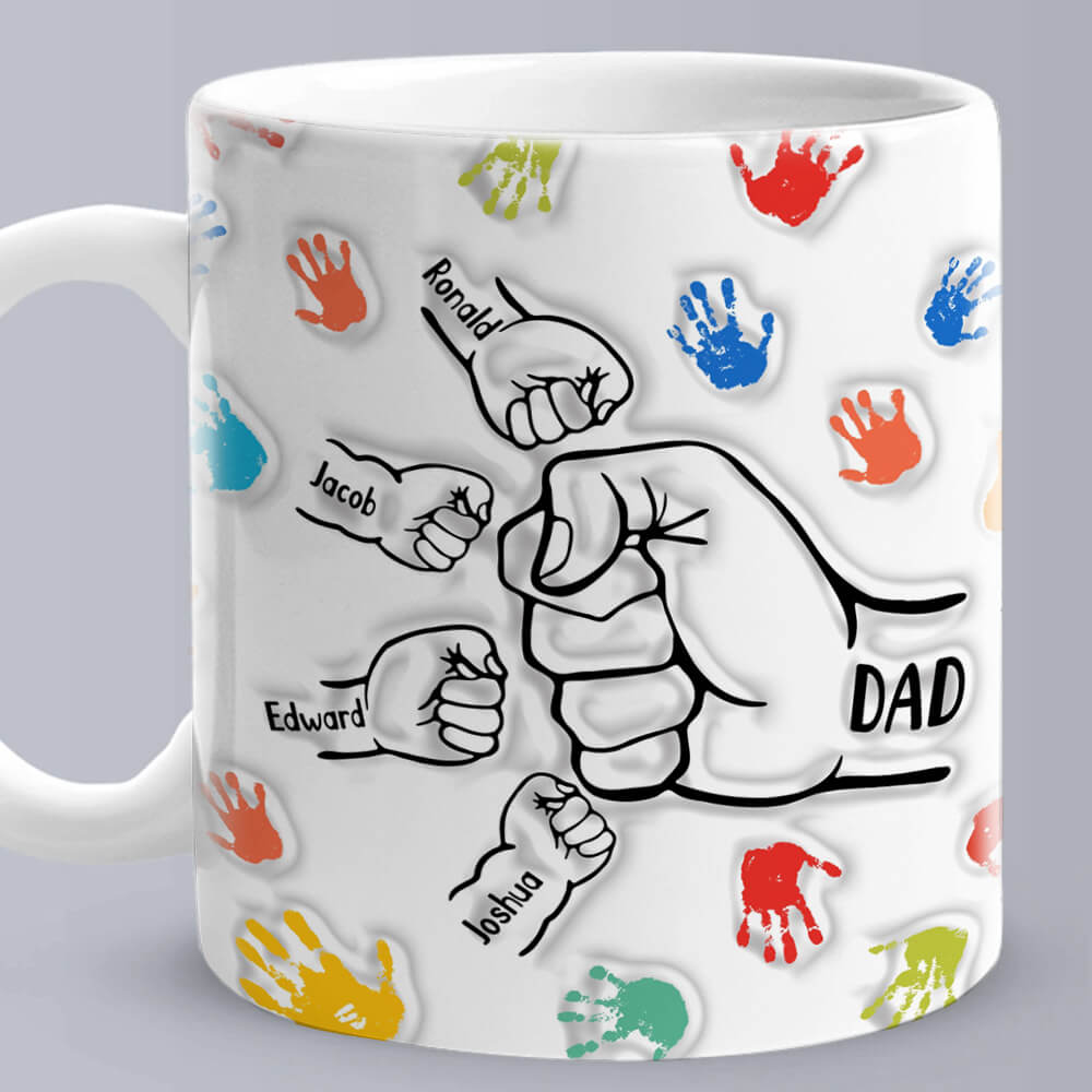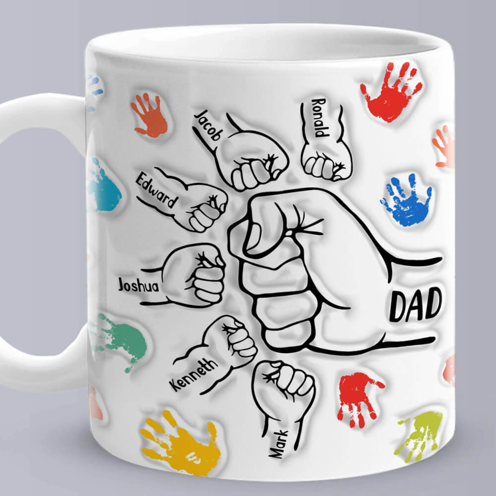 Product description: Surprise your dad or grandpa with this personalized mug featuring a unique 3D inflated effect print. Customize it with their names to make it extra special. This high-quality ceramic mug is perfect for enjoying their favorite hot beverages. A thoughtful and memorable gift that will bring a smile to their face every time they use it. Order now and show your love and appreciation for the special dads and grandpas in your life!