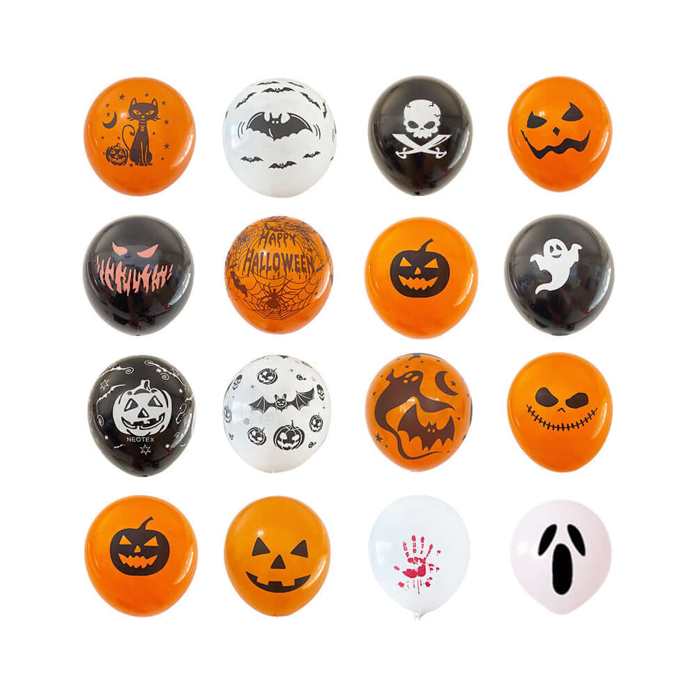 Make your Halloween decorations stand out with these 100 Pcs halloween latex balloons. Each balloon is 12 inches in size and perfect for creating that spooky atmosphere. Brightly colored with prints of ghosts, bats, pumpkins and more, these latex balloons will be a great addition to any halloween party.