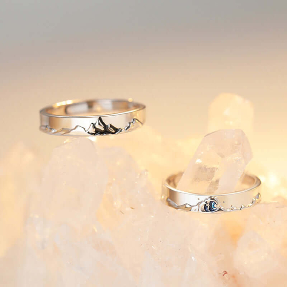 This mountain ocean couple ring set is the perfect jewelry gift for your special someone. The adjustable rings have a unique mountain and ocean design. The adjustable design makes them the perfect gift for couples of all sizes. Show your love and appreciation with this timeless gift.
